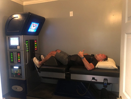 Spinal decompression is a non-invasive mechanical procedure performed within our office to help alleviate back pain. It involves gently stretching the spine to take pressure off the spinal discs (the cushions that separate the vertebrae in the spine).